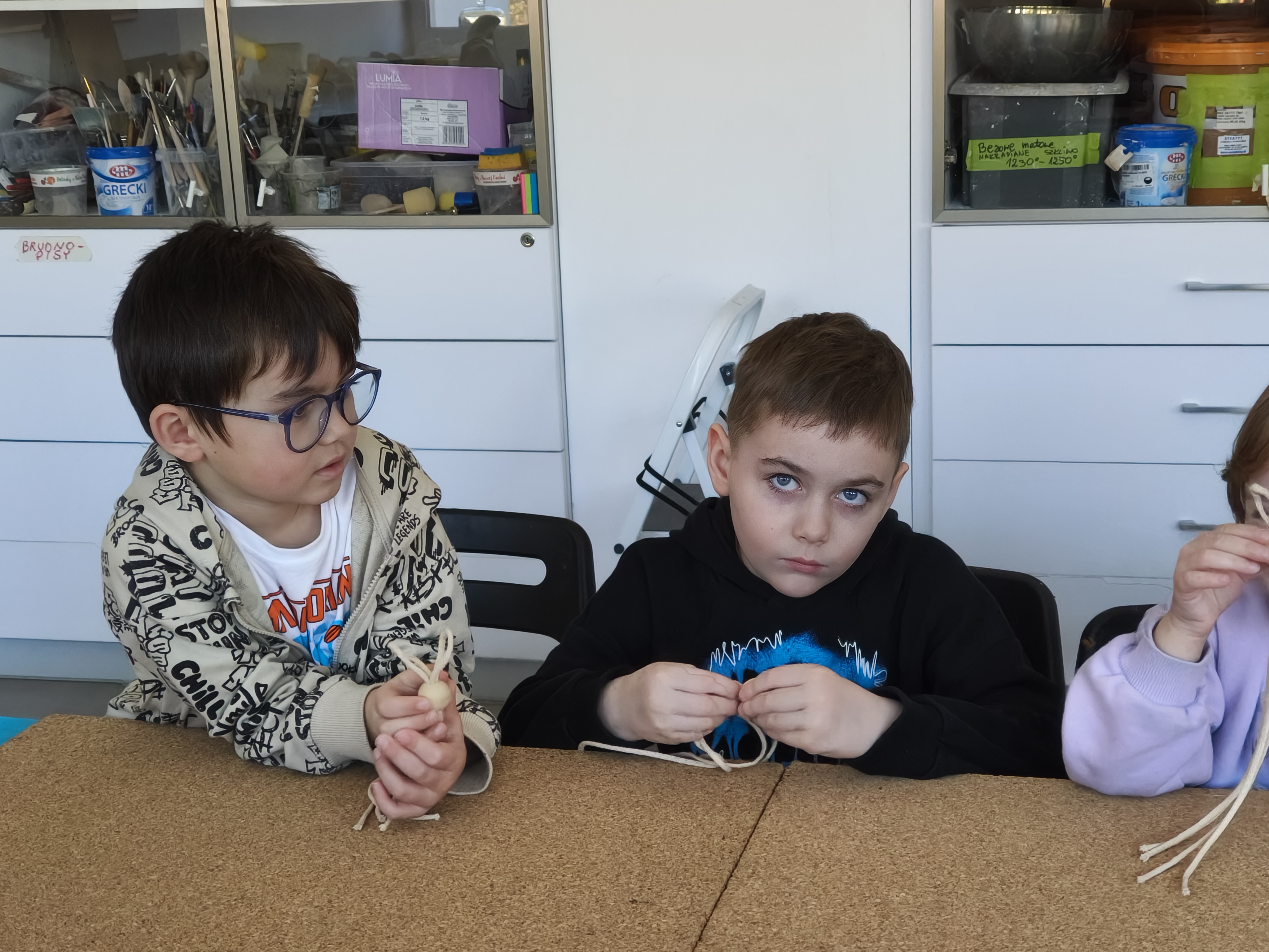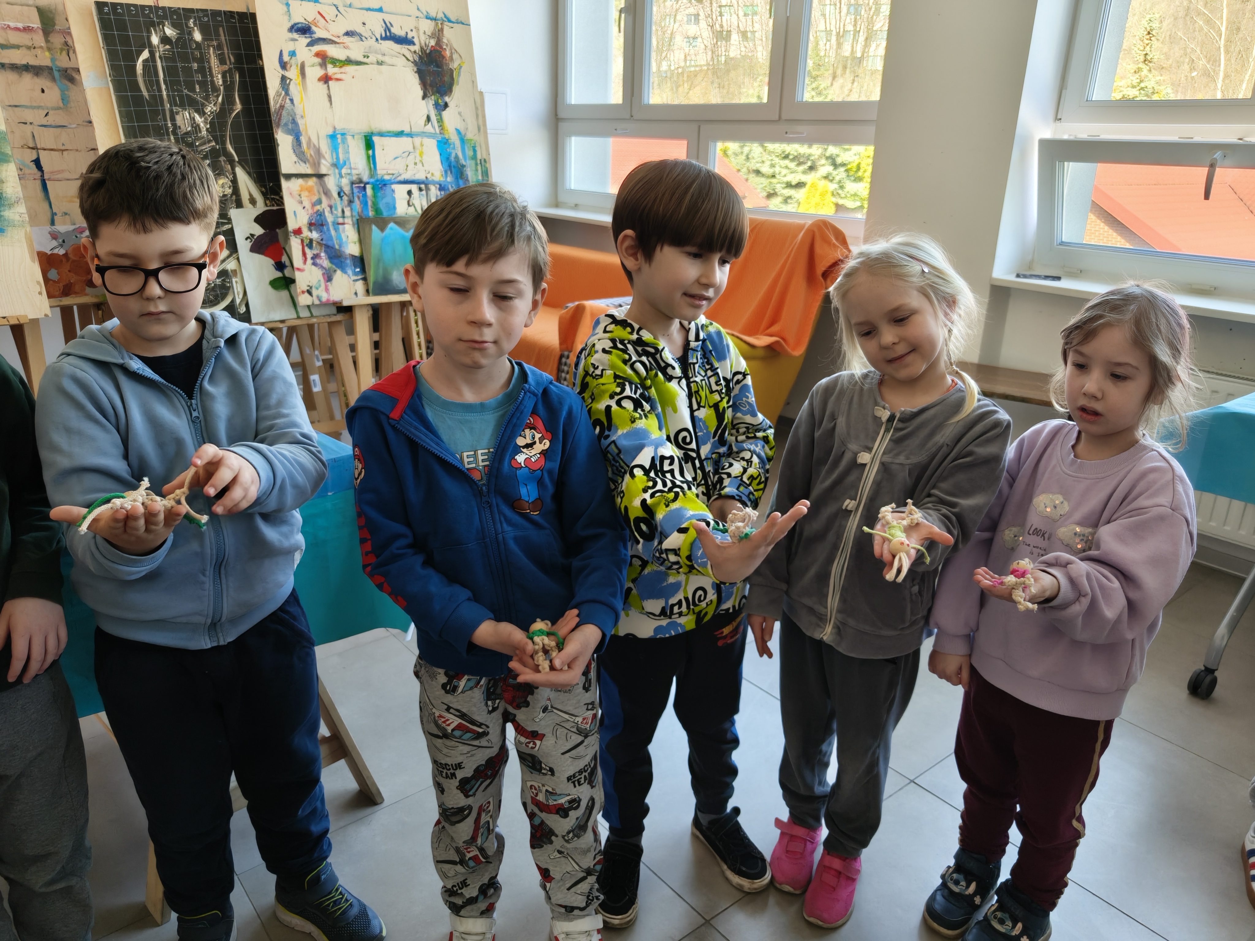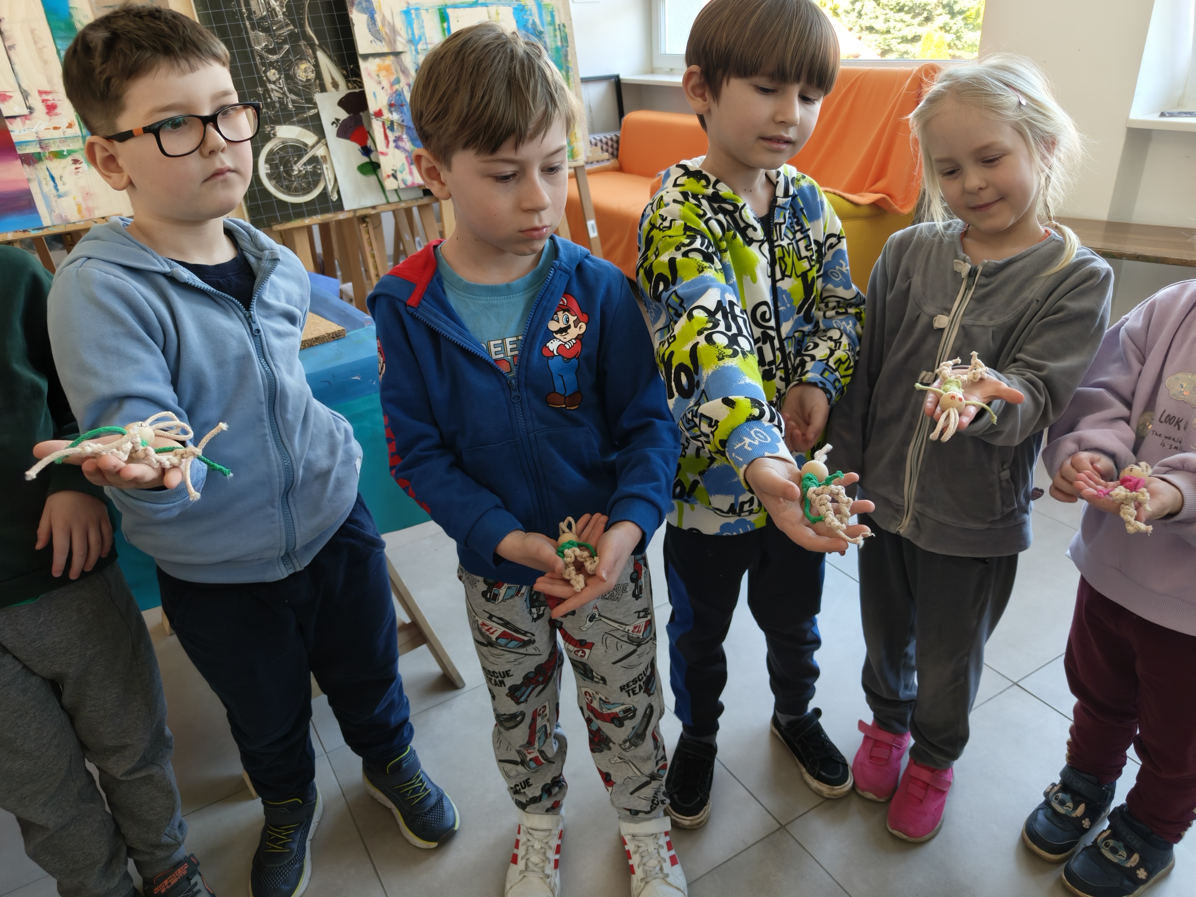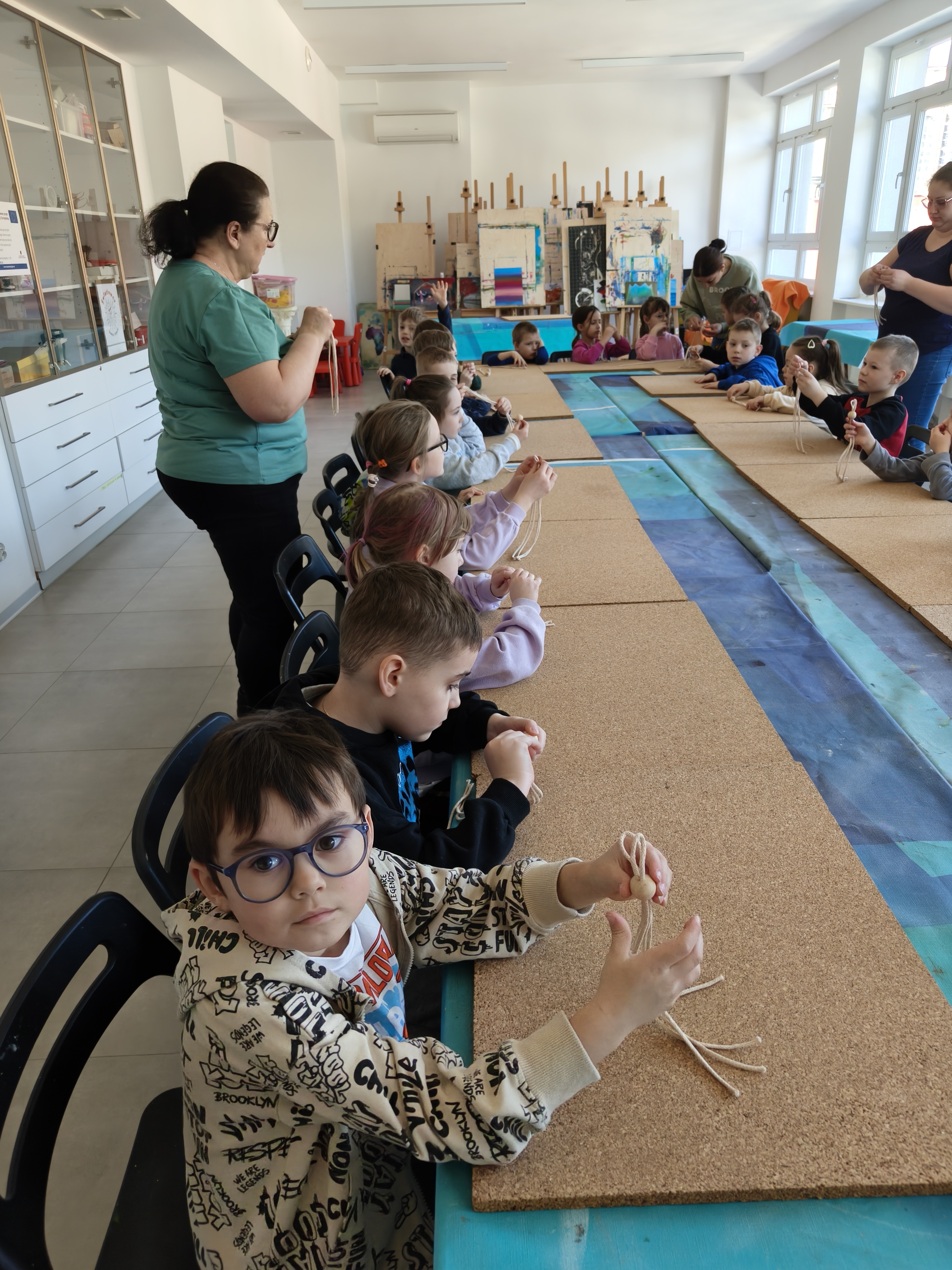 Dzieci były bardzo zainteresowane i przejęte wykonywaniem kolejnych etapów makramy.