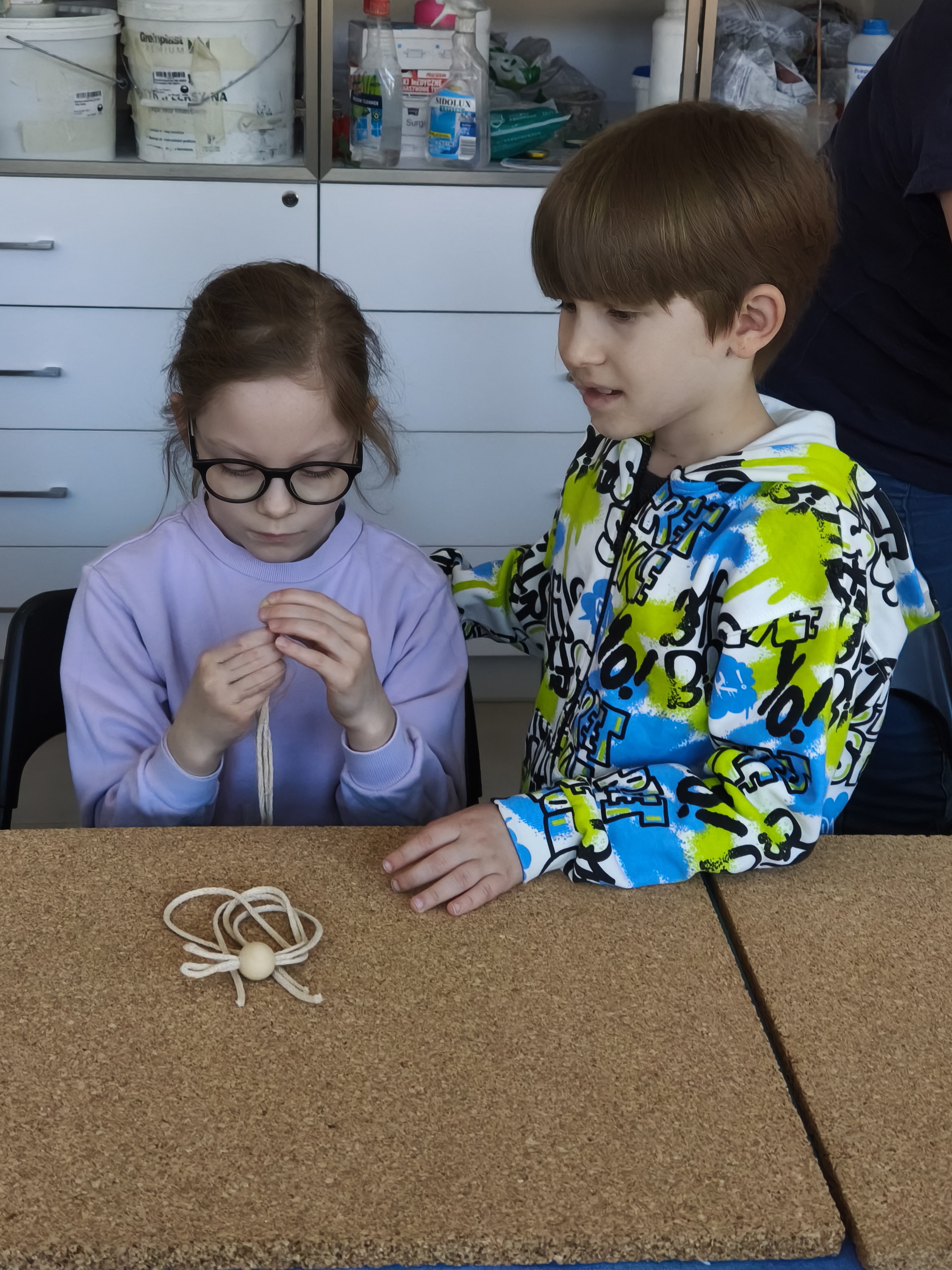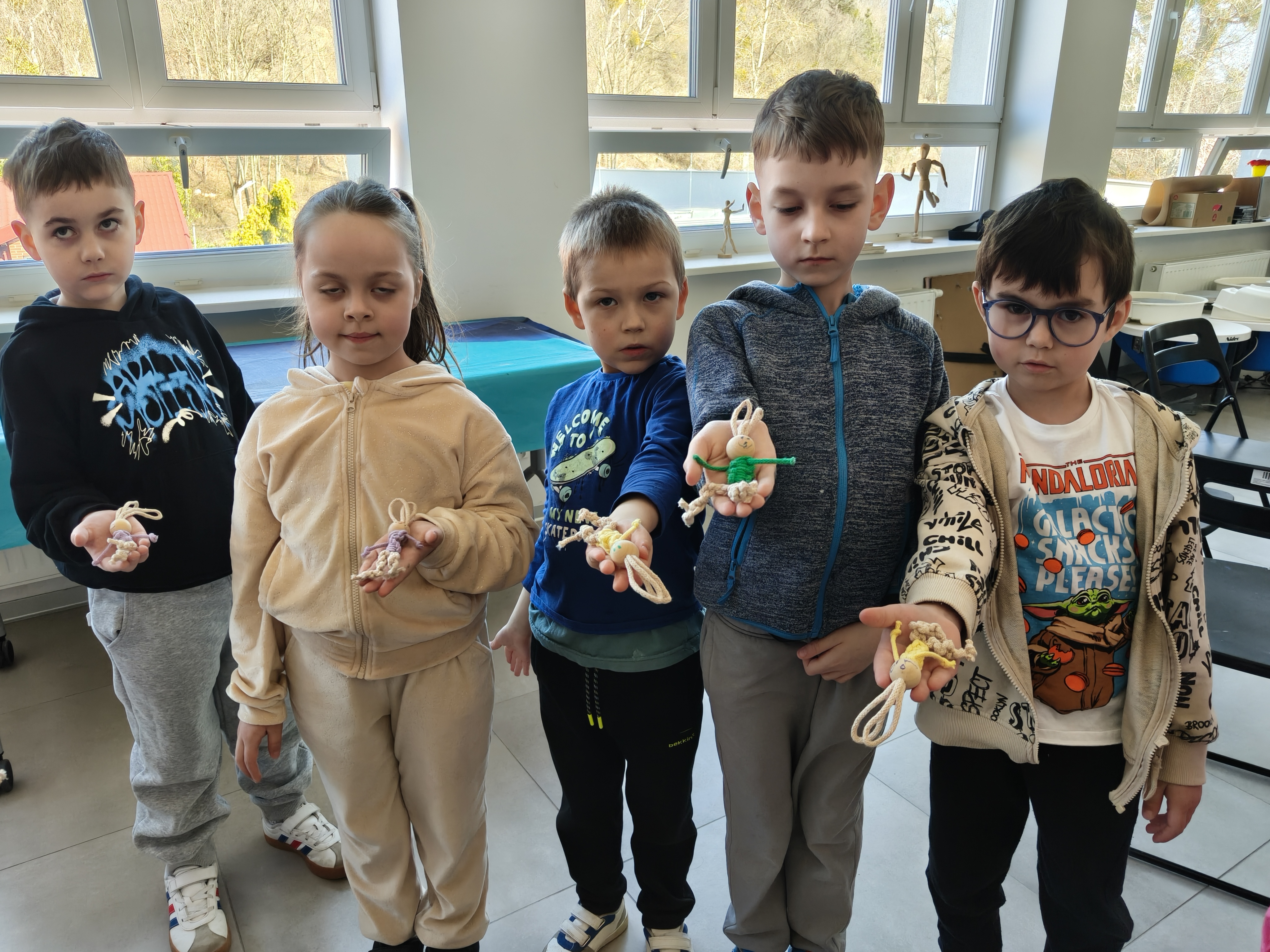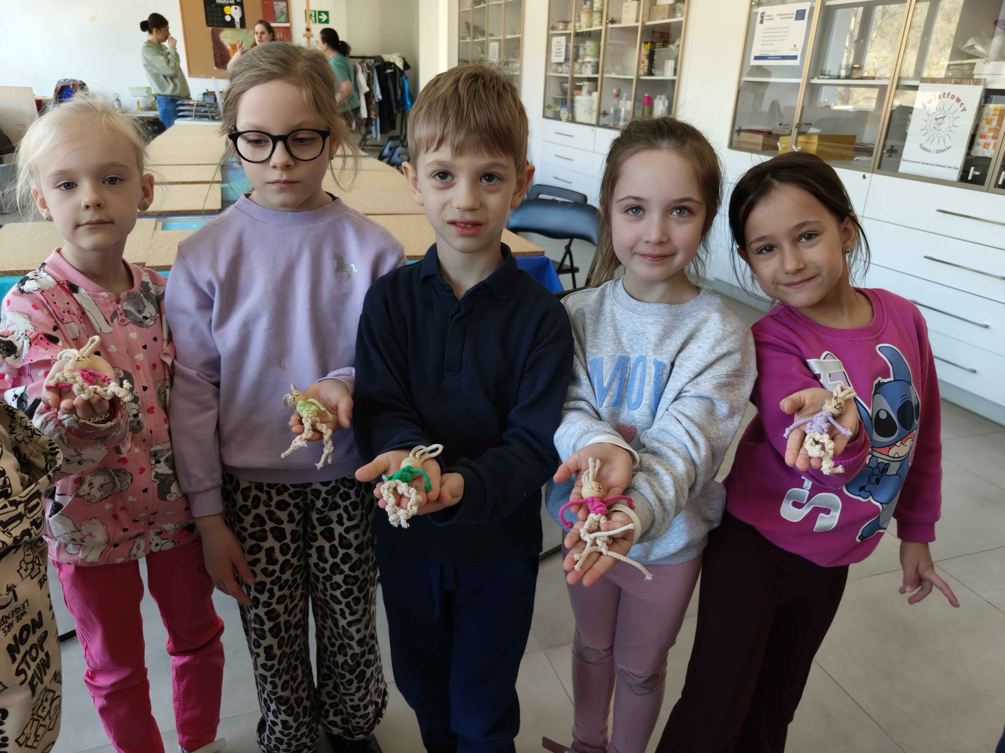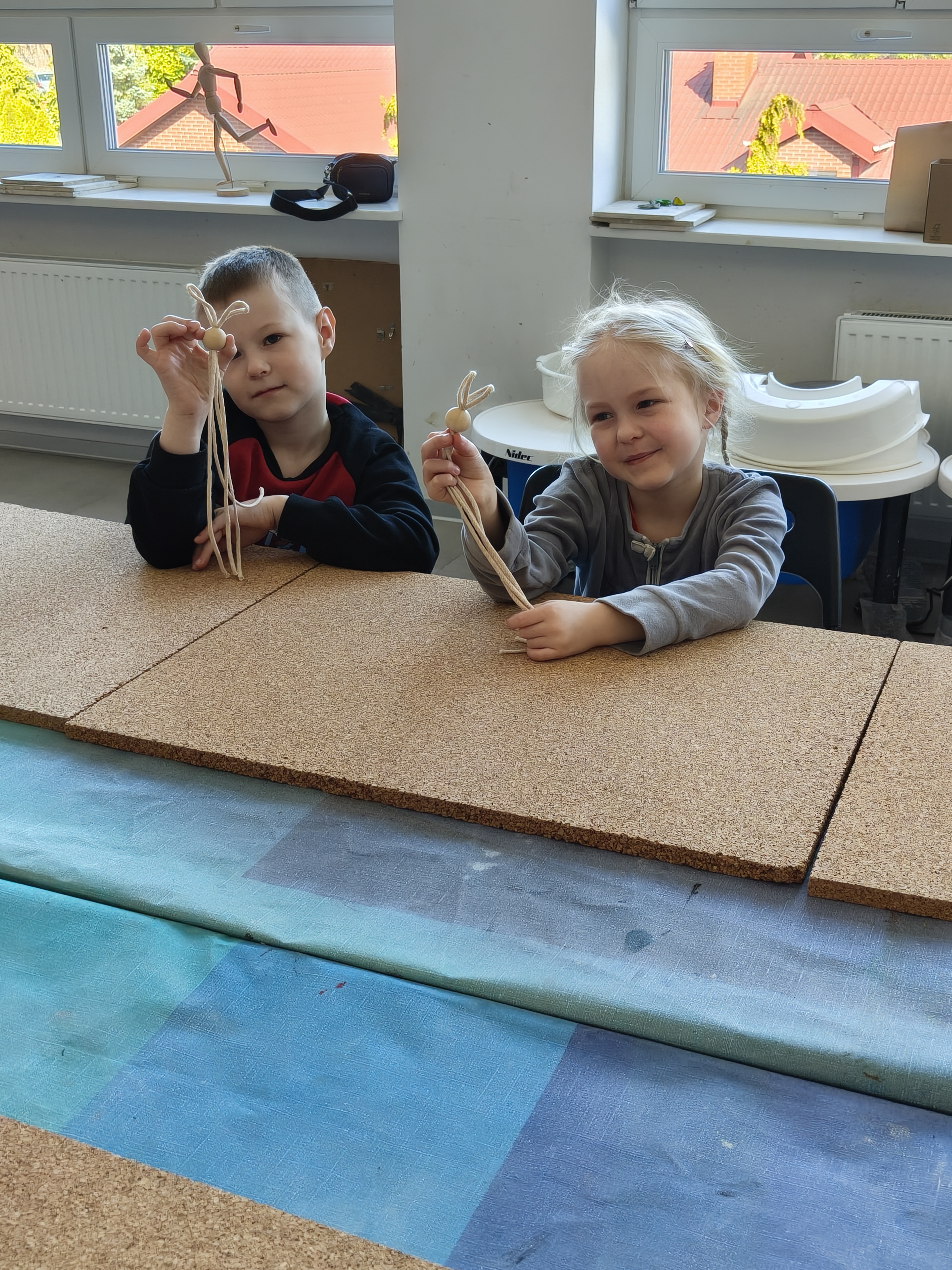 Każde dziecko mogło wykonać zajączka, ze sznurka i drewnianej kulki, z niewielką pomocą dorosłych.
