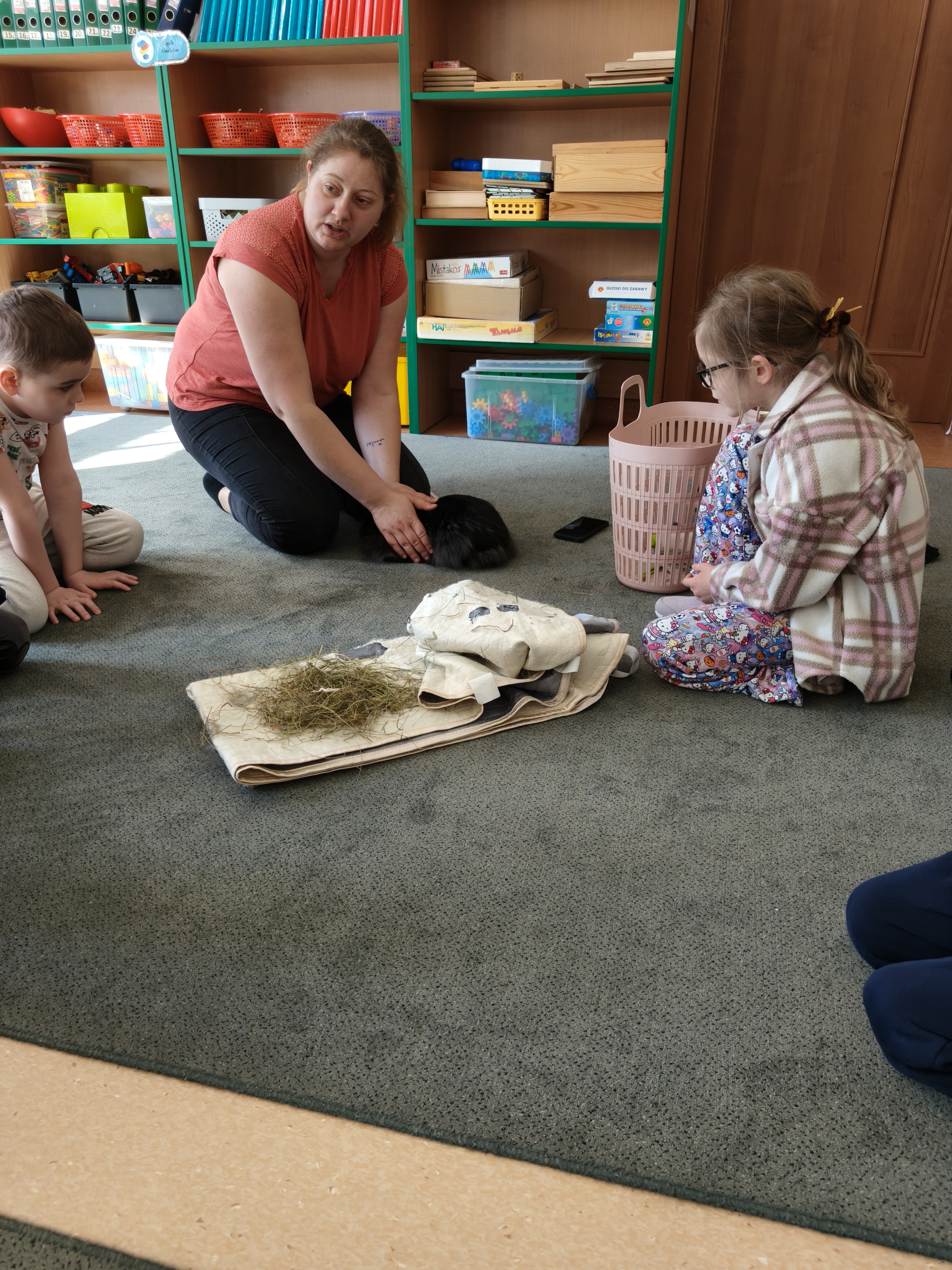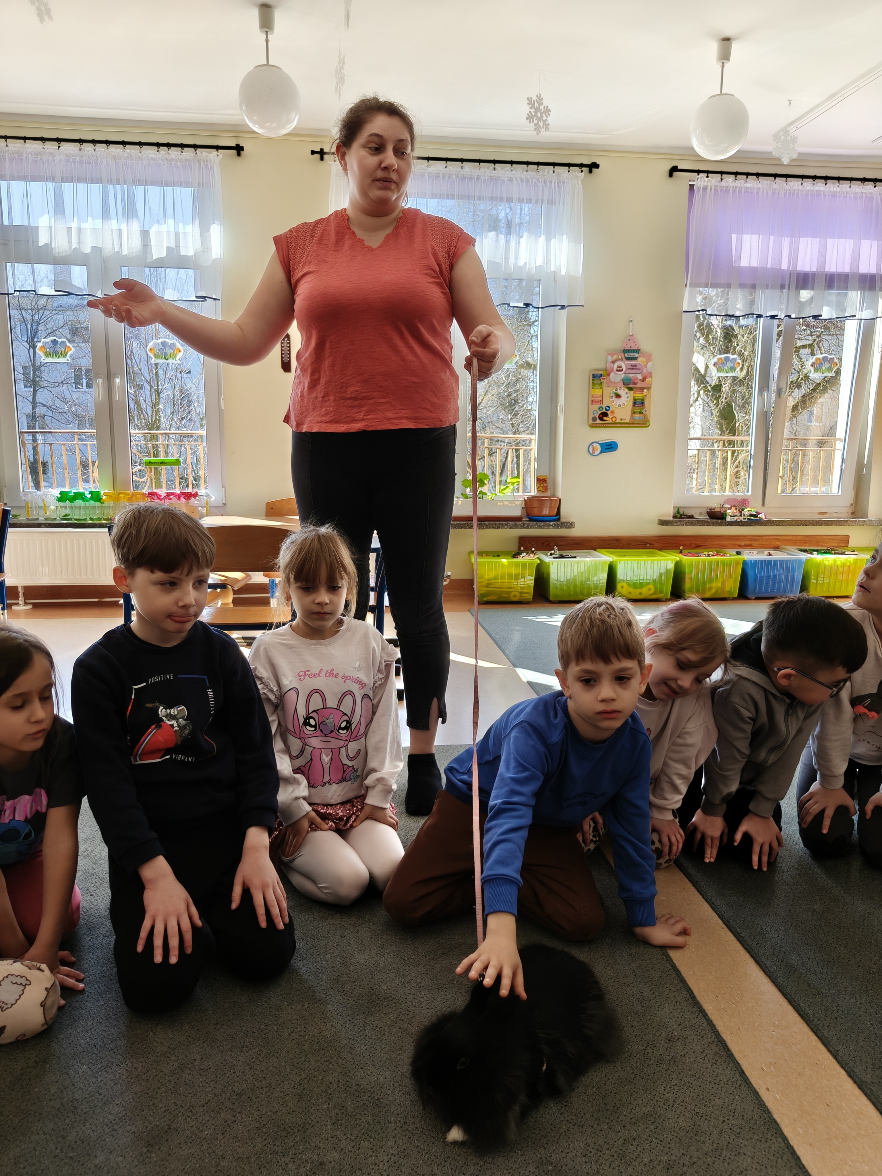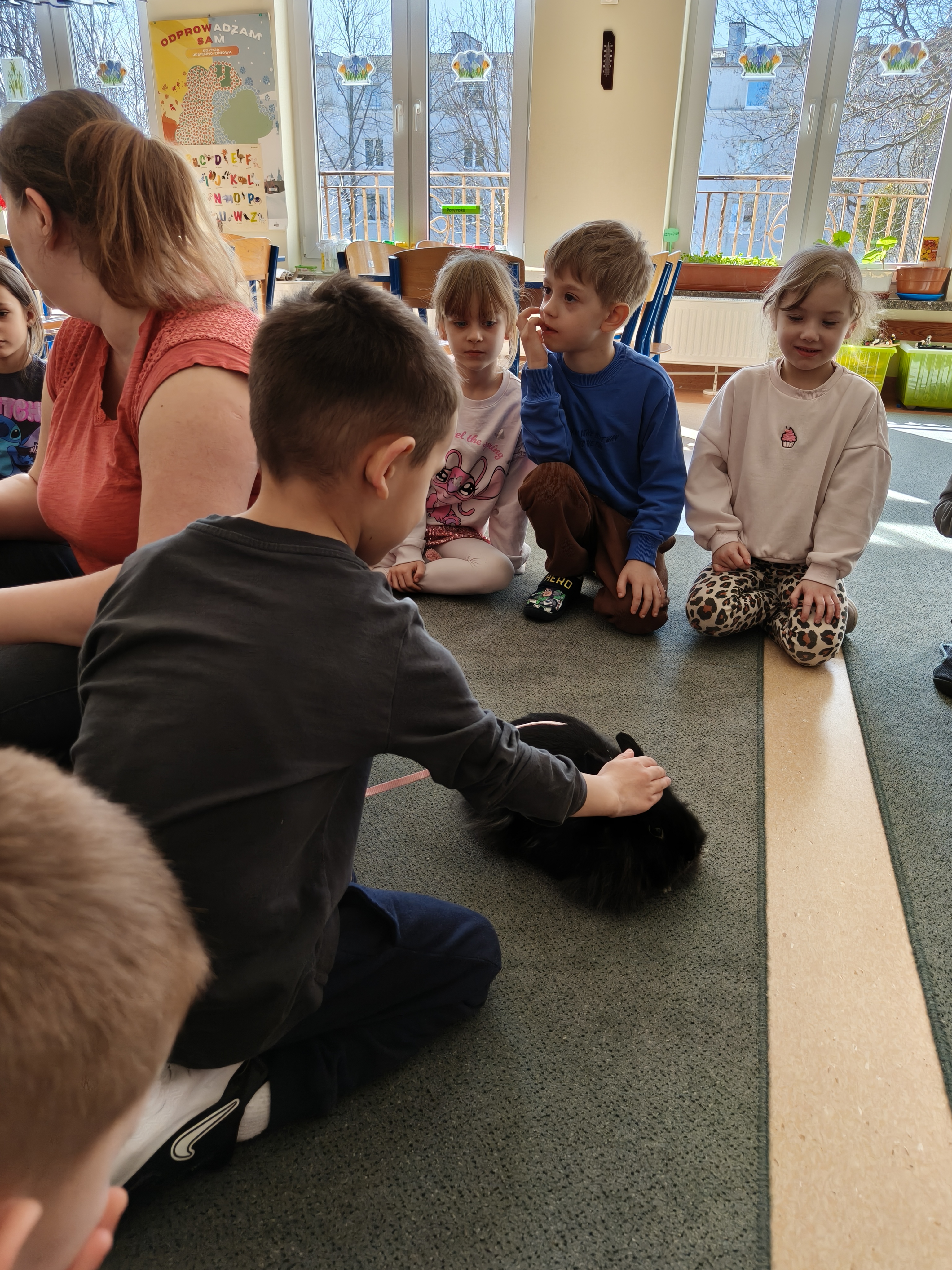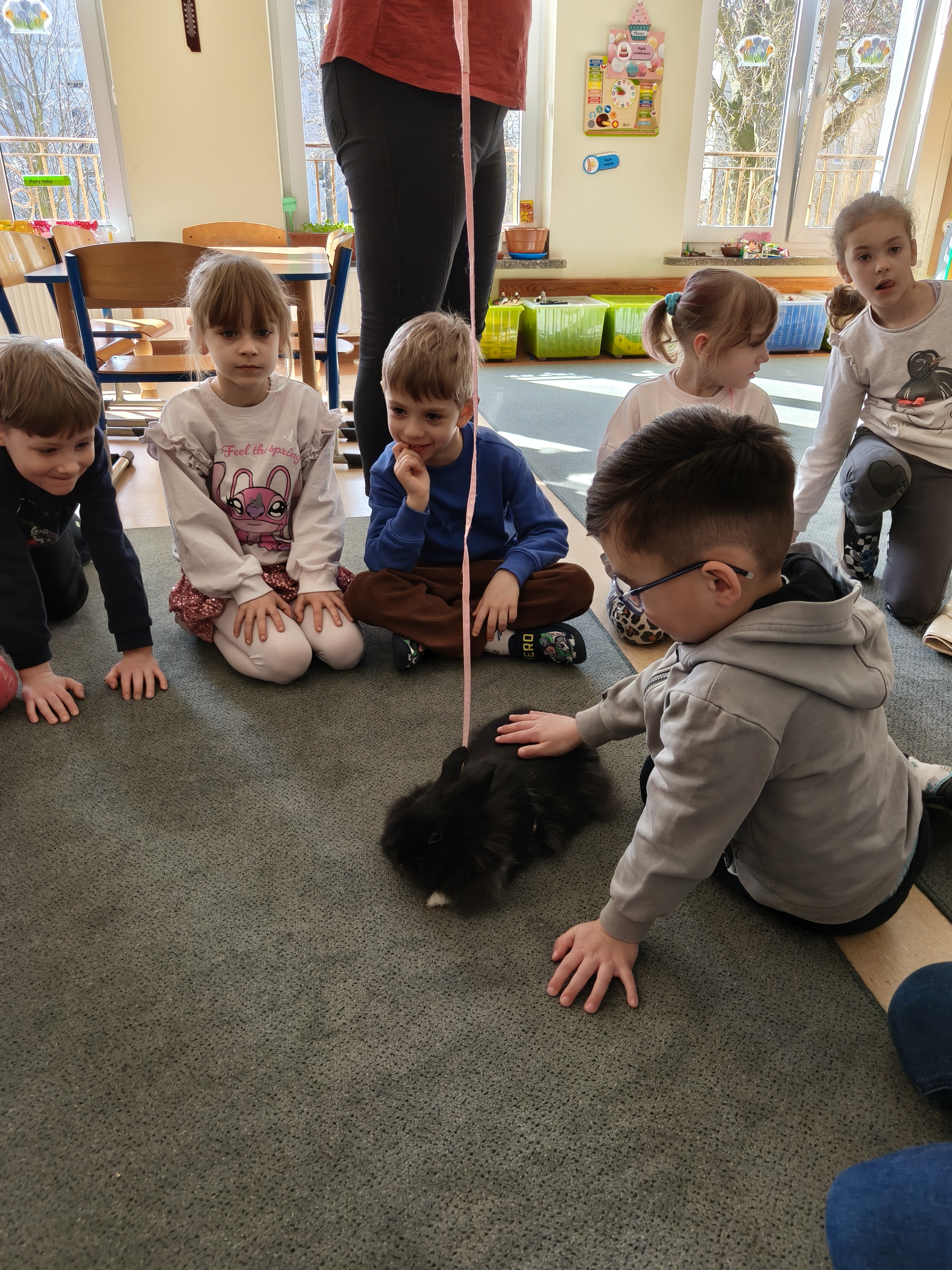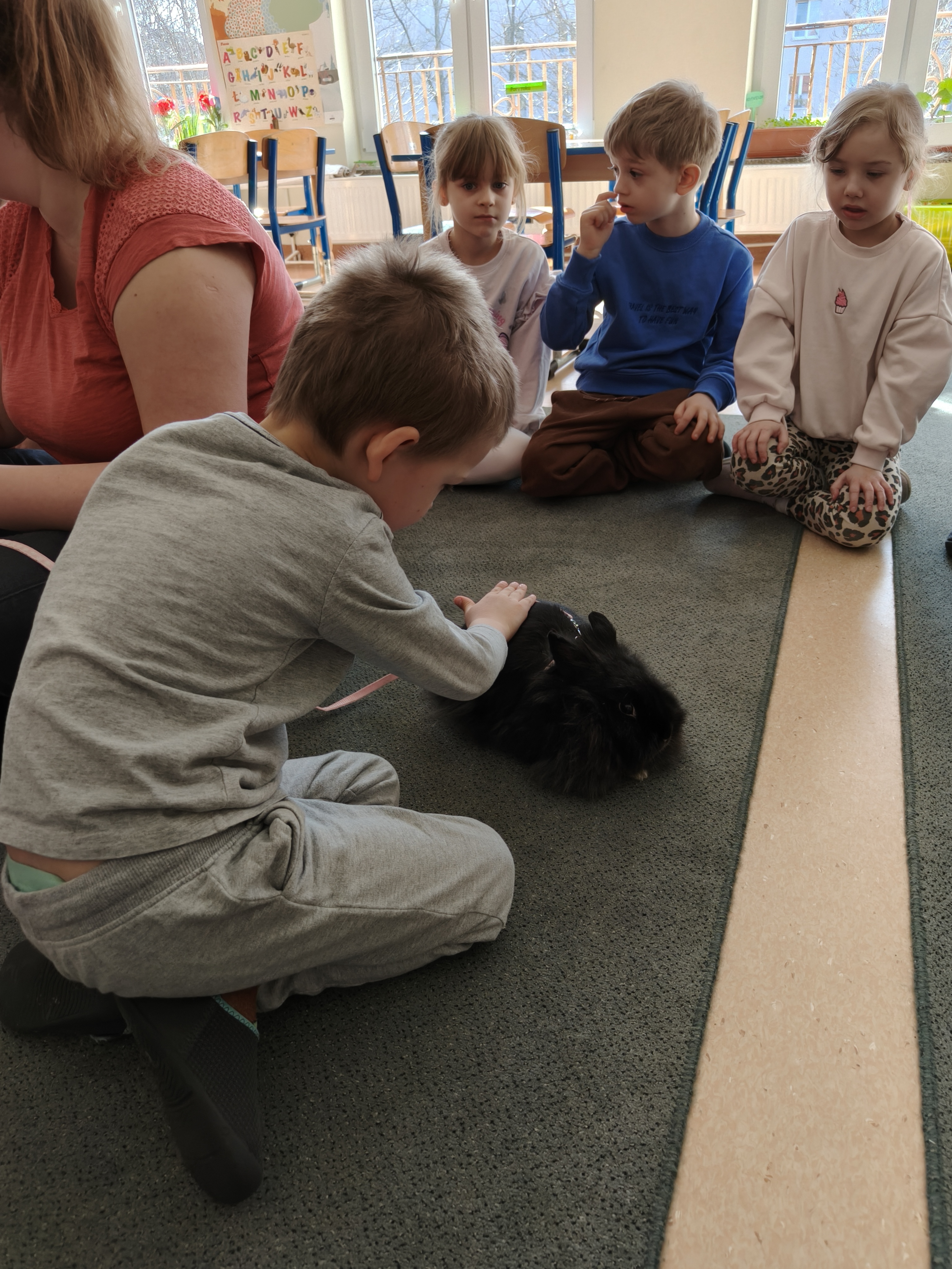Każdy mógł pogłaskać i poobserwować królika w naszej sali.