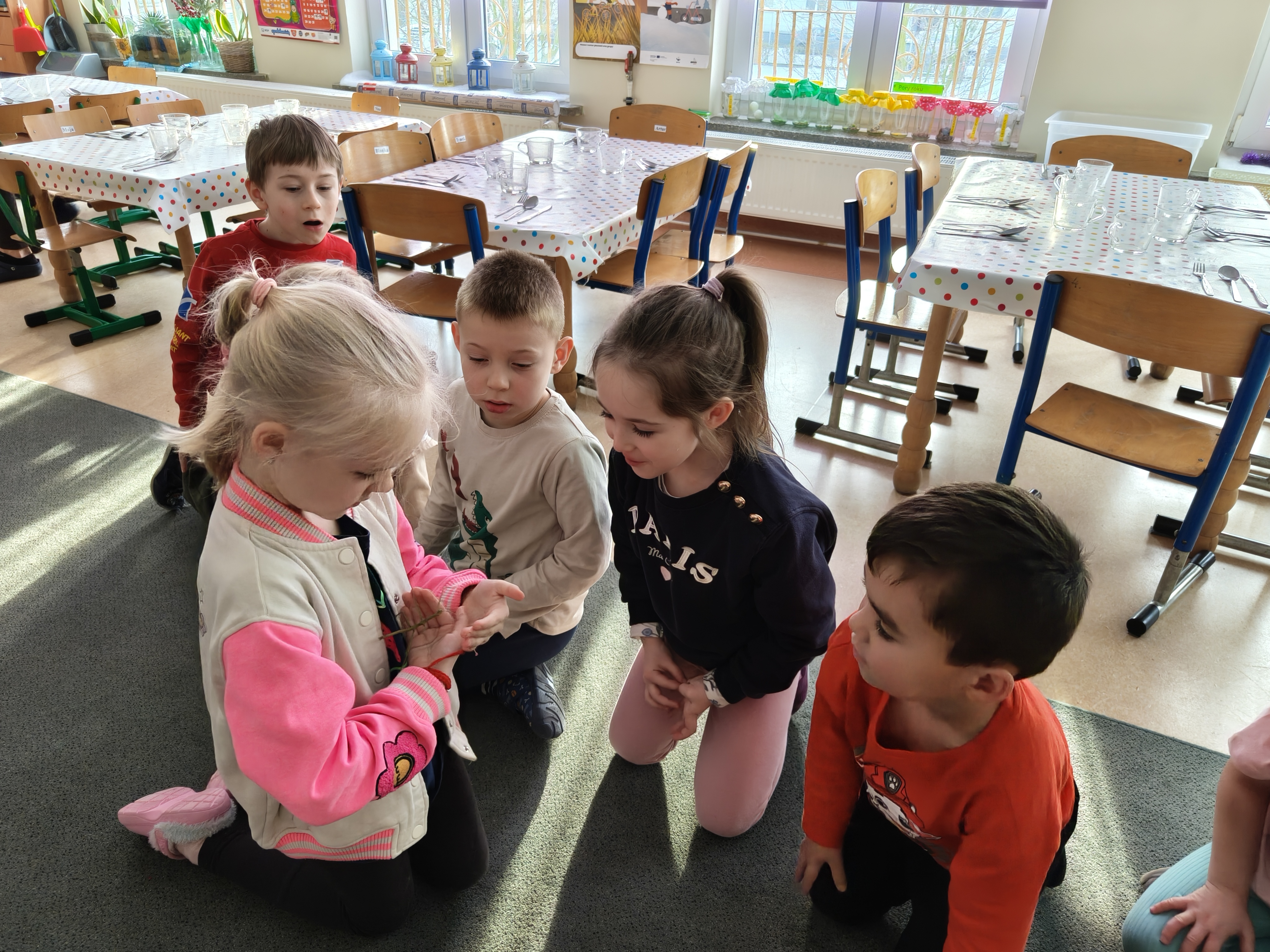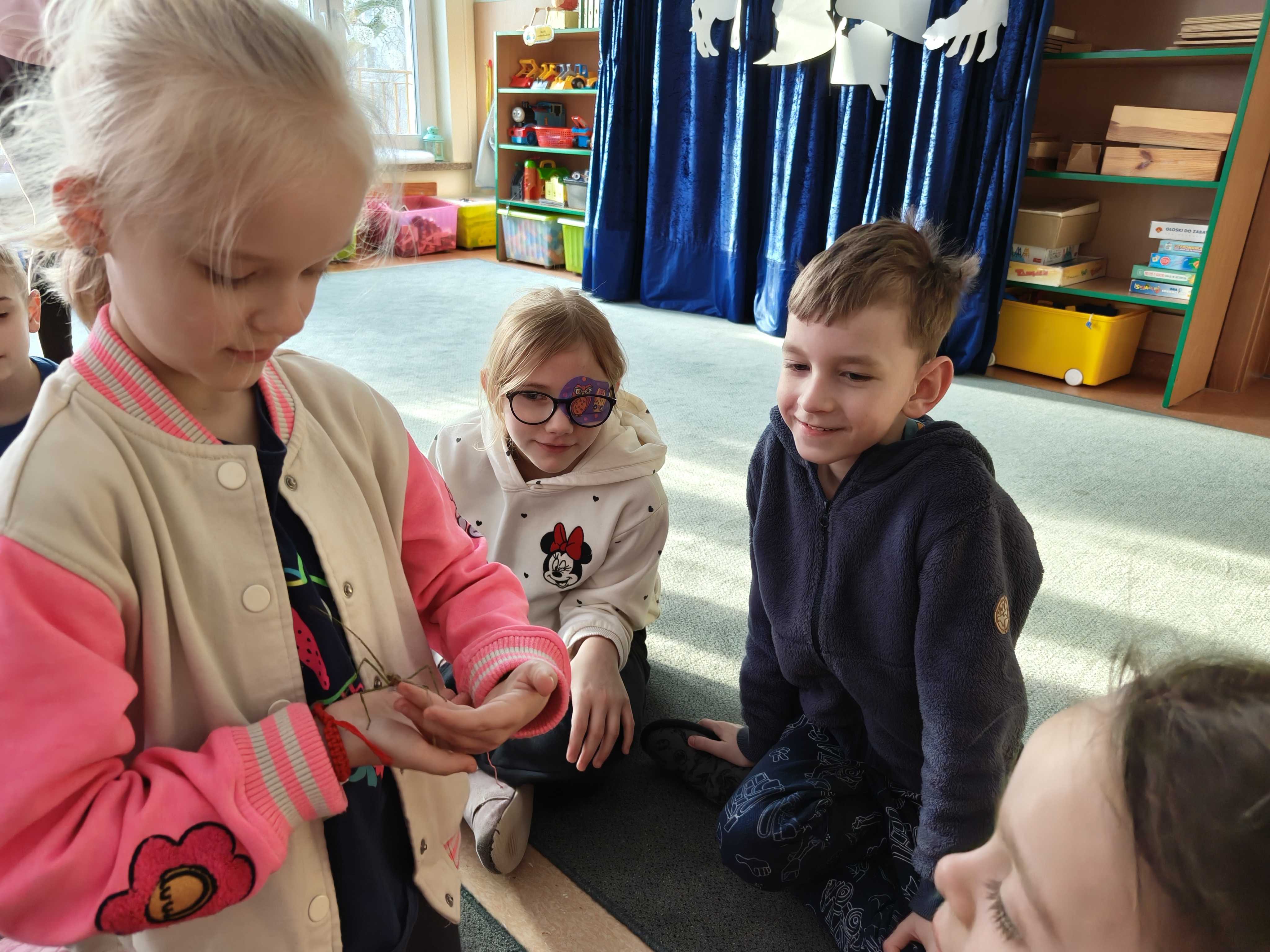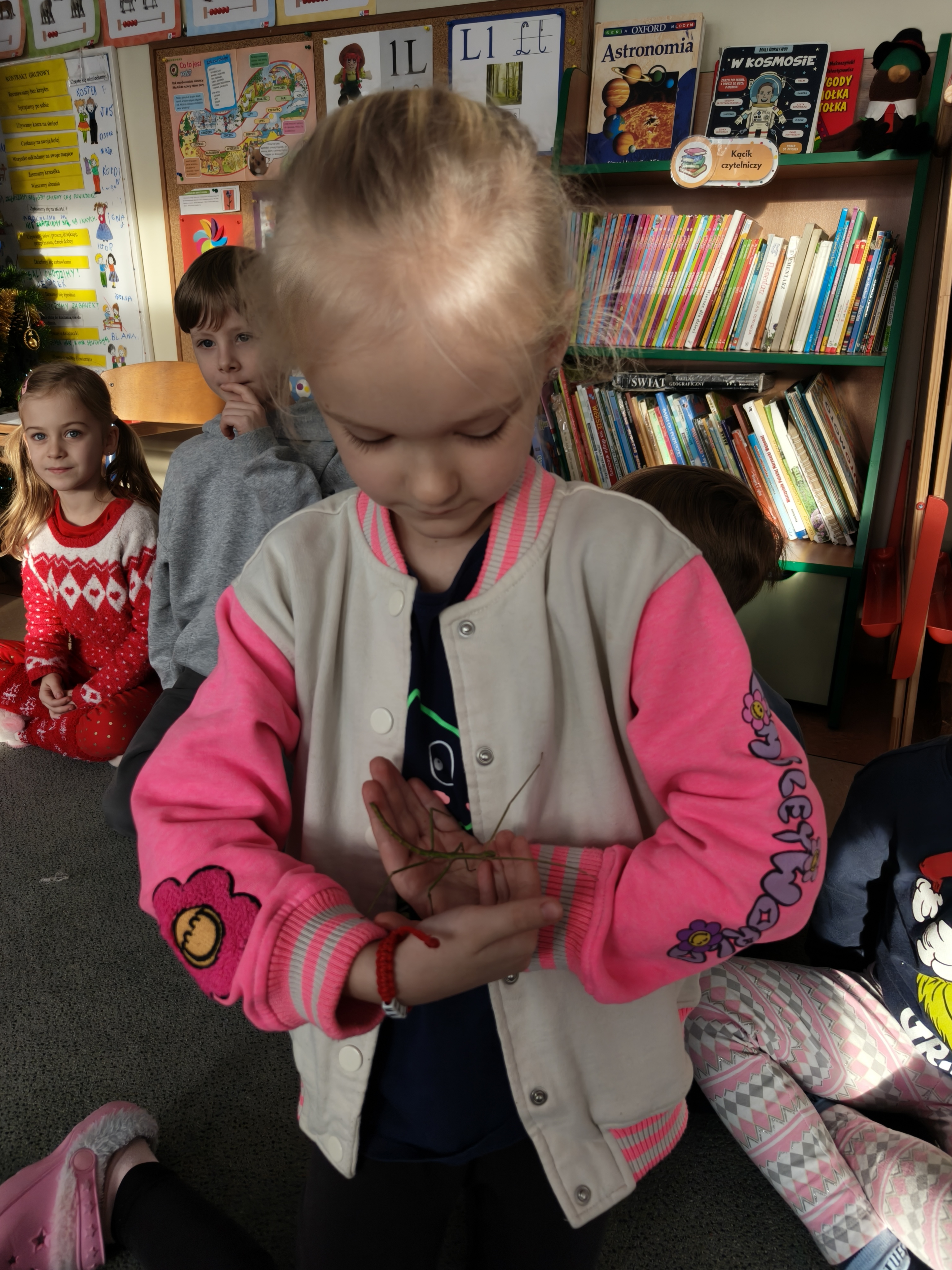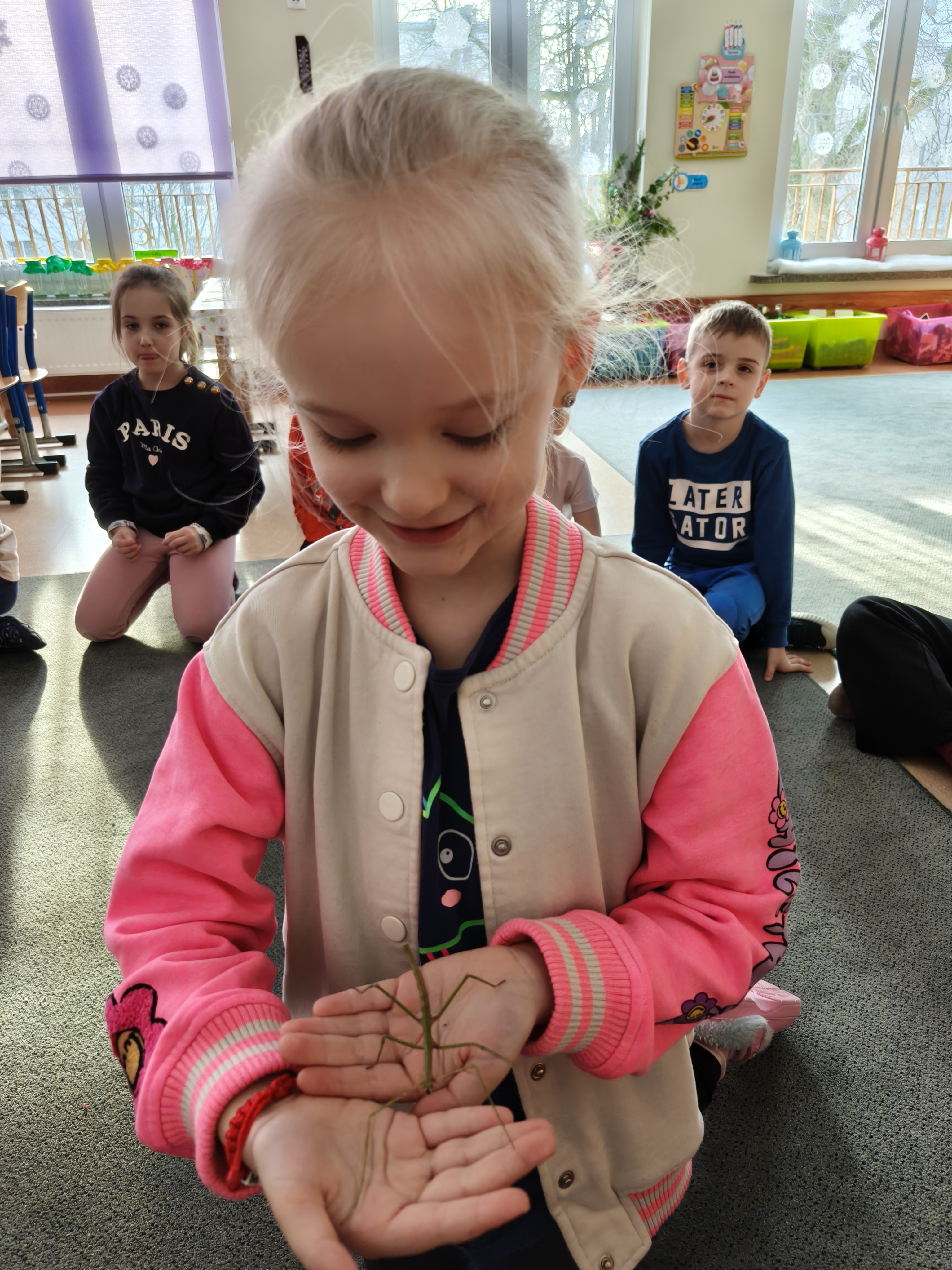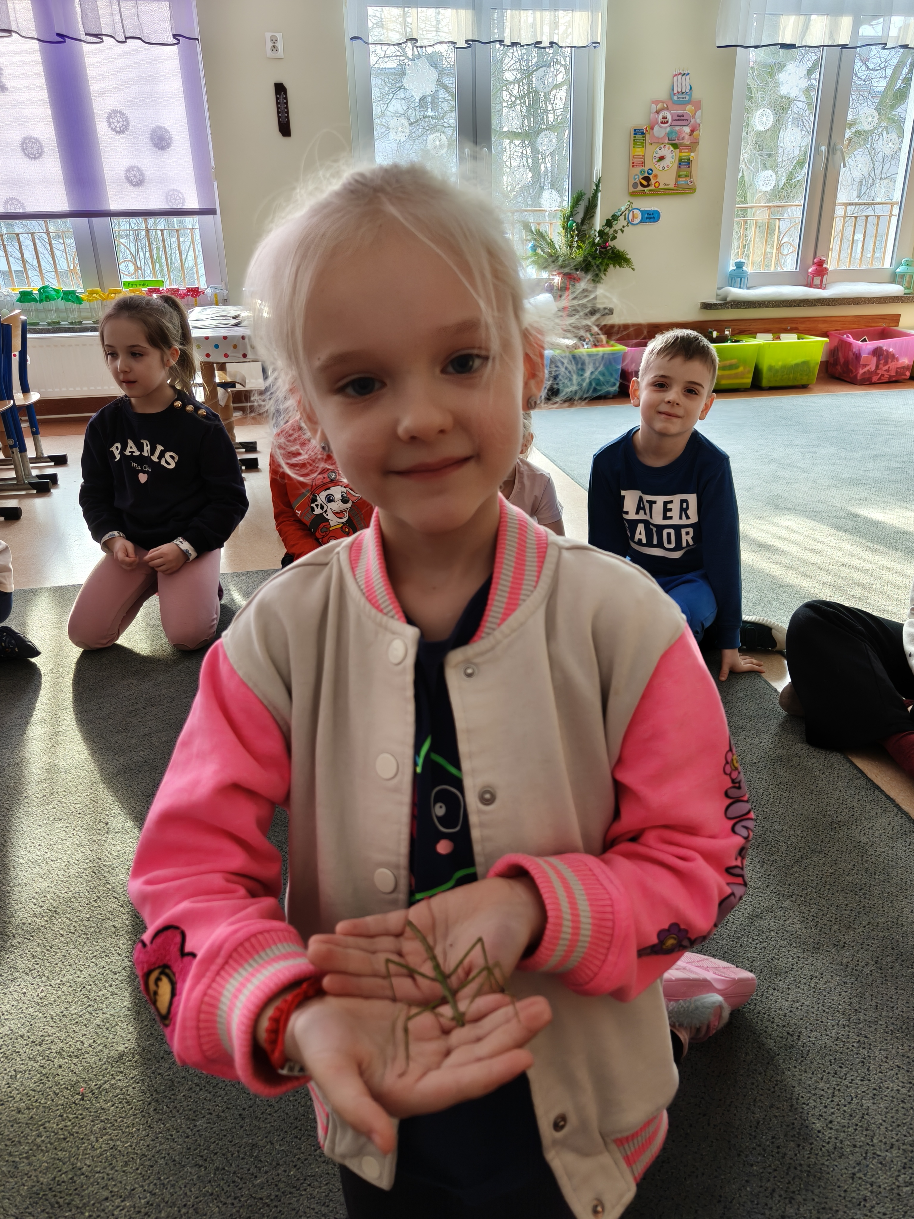 Nasza koleżanka Maja przyniosła do przedszkola patyczaka, który mieszka w terrarium.