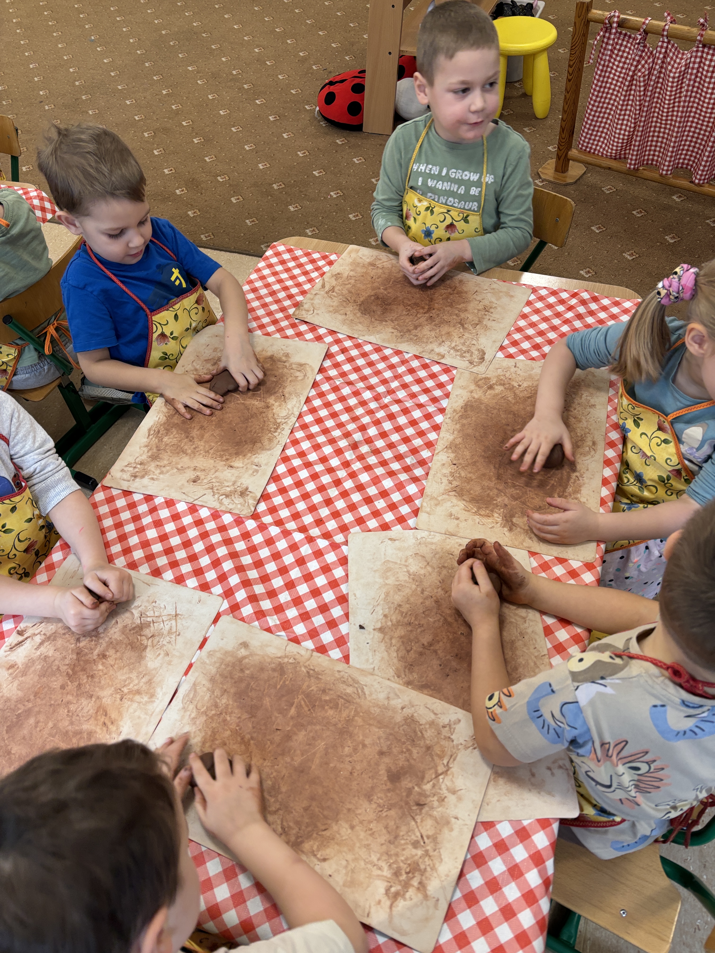 Praca z gliną wycisza, uczy cierpliwości, umożliwia doskonalenie umiejętności koncentracji, rozwija wyobraźnię i ekspresję plastyczną.
