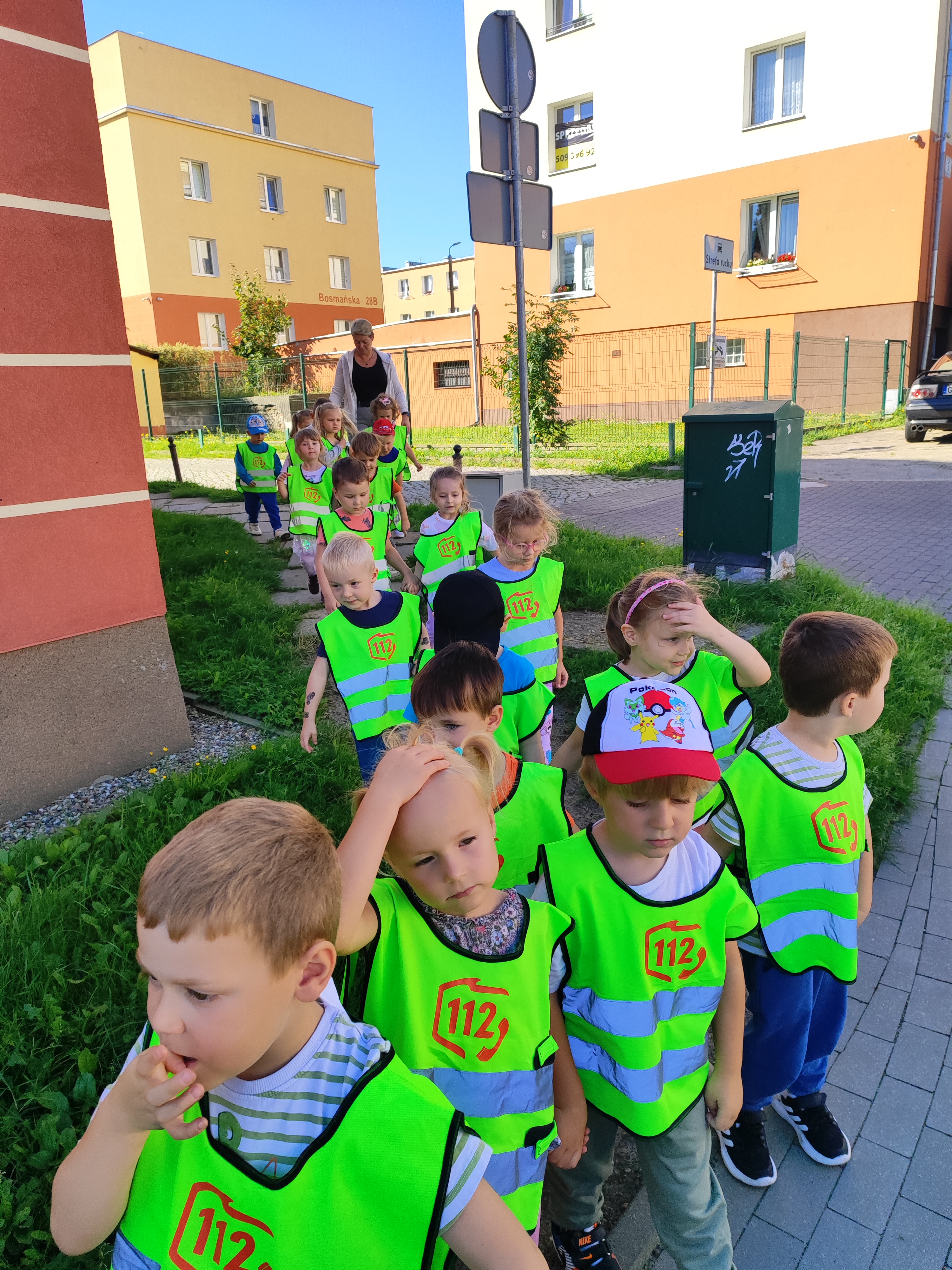 W piątek 12 września wyruszyliśmy na naszą pierwszą wycieczkę - na pobliskie skrzyżowanie w celu utrwalenia zasad ruchu drogowego oraz zaobserwowania zachowania się pieszych i kierowców. Dzieci uczyły się właściwego sposobu przechodzenia przez jezdnię oraz utrwalały poruszanie się w parach. Teraz już każda Biedronka wie jak należy się zachowywać na ulicy, gdzie można przechodzić przez ulicę oraz na jakim świetle.