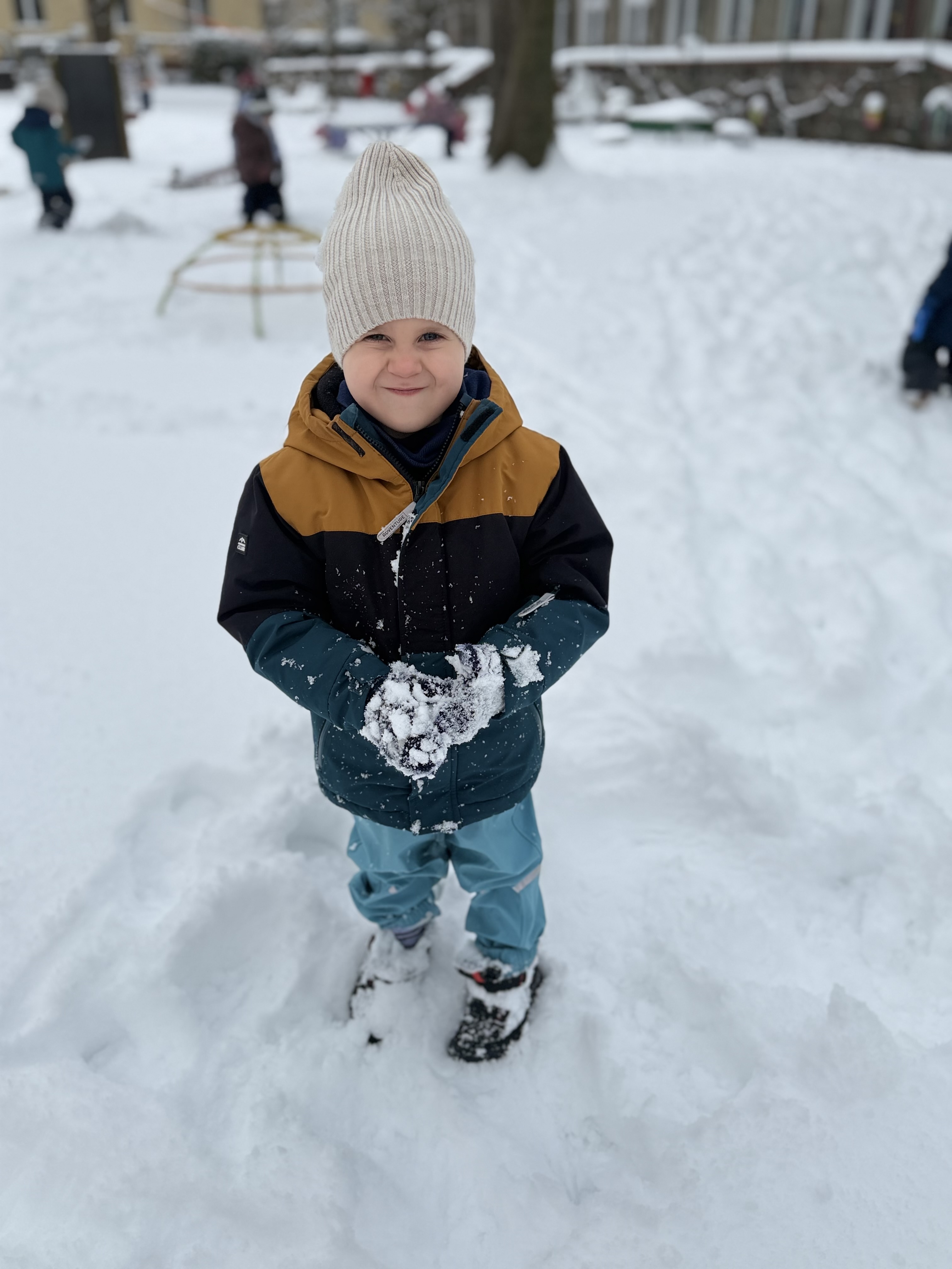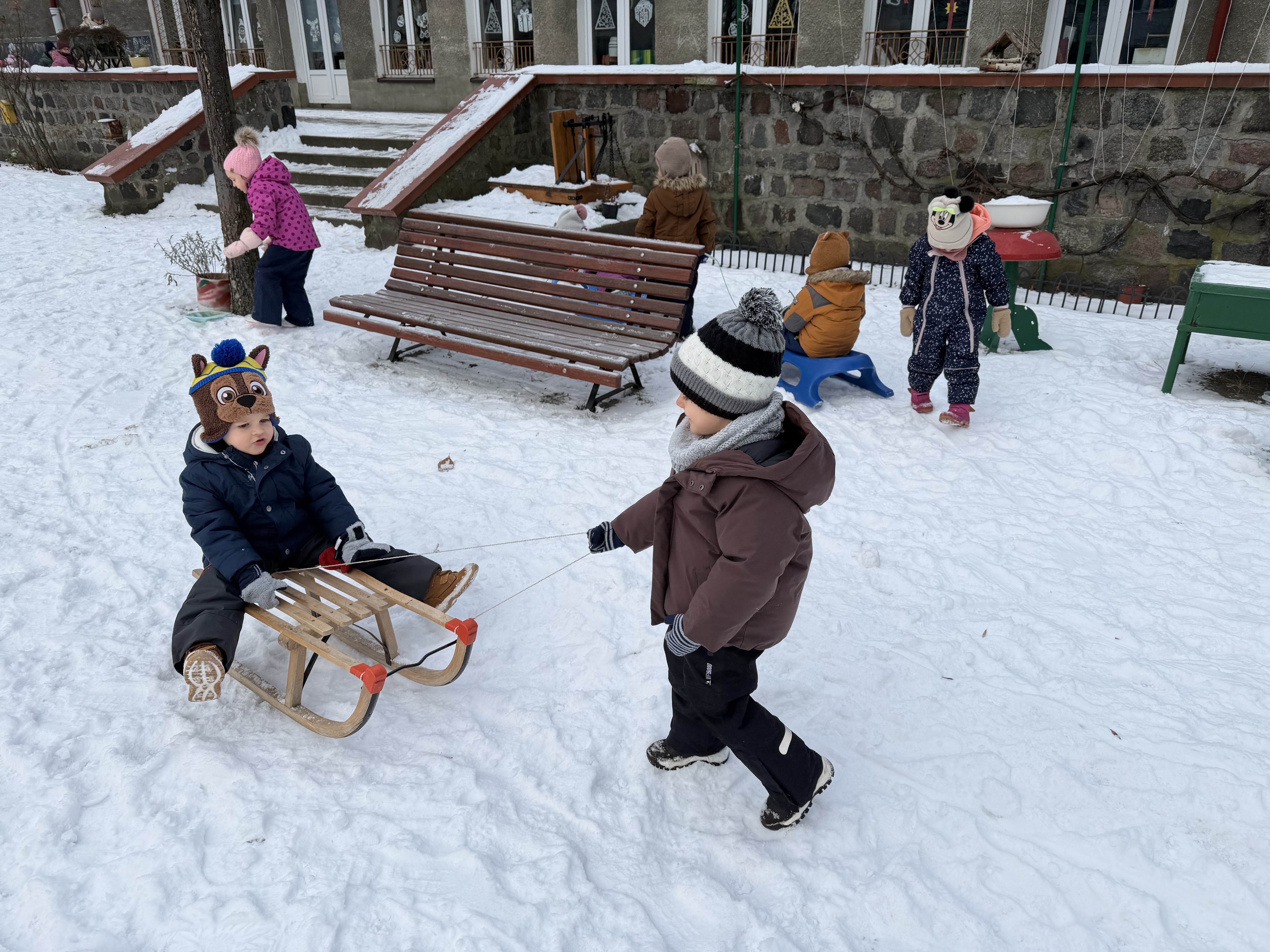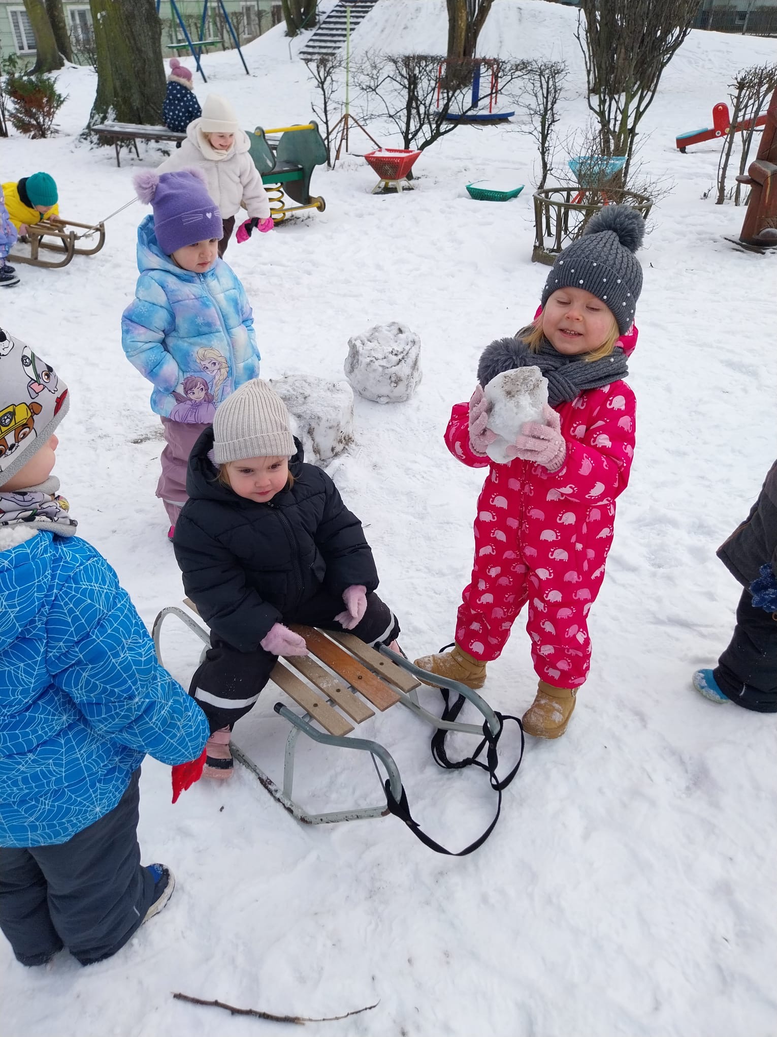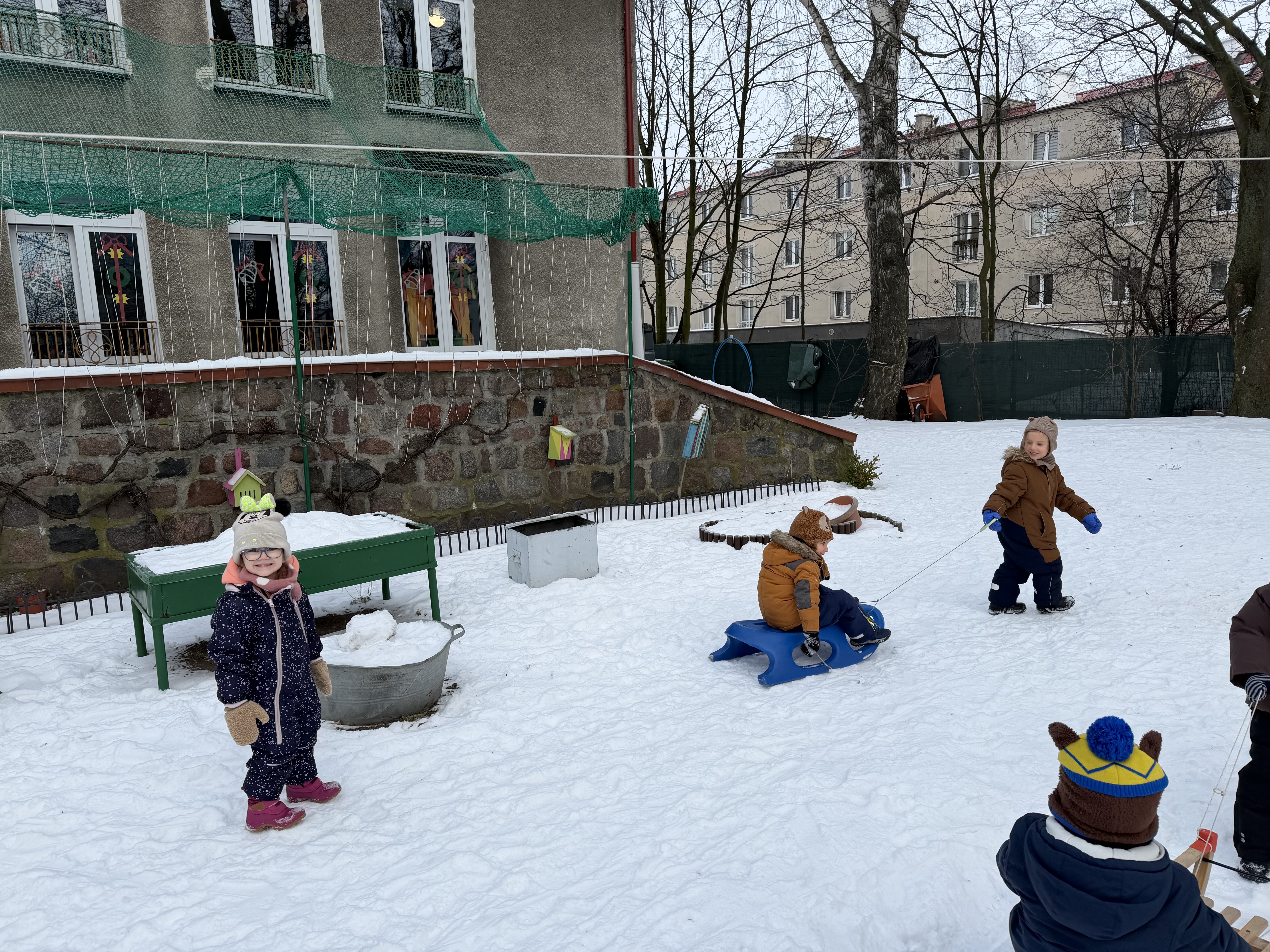 Do naszego przedszkola zawitała prawdziwa zima! Dużo śniegu sprawiło, że nasz ogród zamienił się w bajkową, białą krainę, a wraz z nią pojawiło się mnóstwo okazji do radosnych zabaw na świeżym powietrzu. Zimowa aura to dla dzieci ogromna frajda – lepienie bałwanów, robienie aniołów , sanki, bieganie i wspólne odkrywanie zimowej przyrody wywołują wiele uśmiechów i pozytywnych emocji.