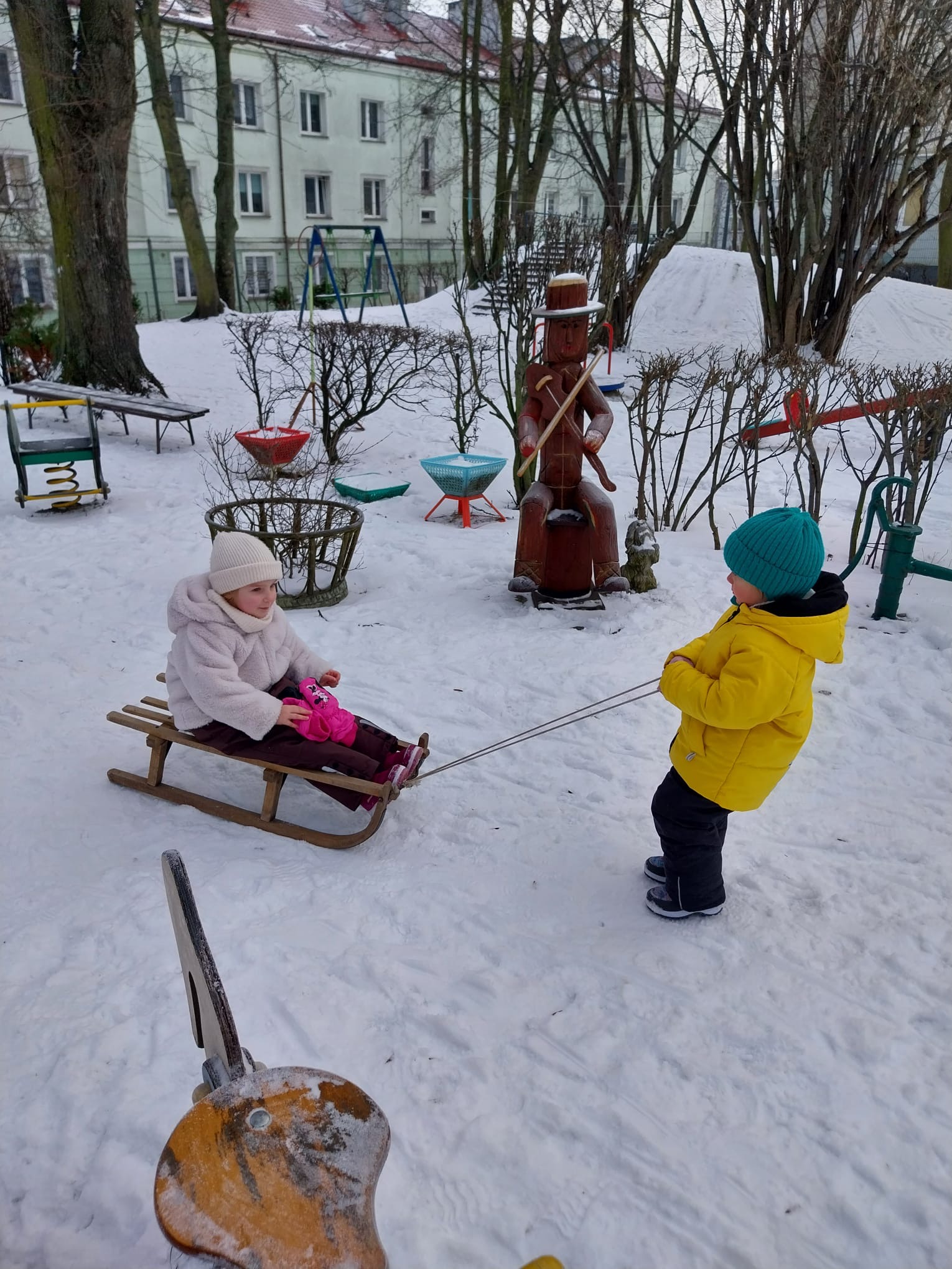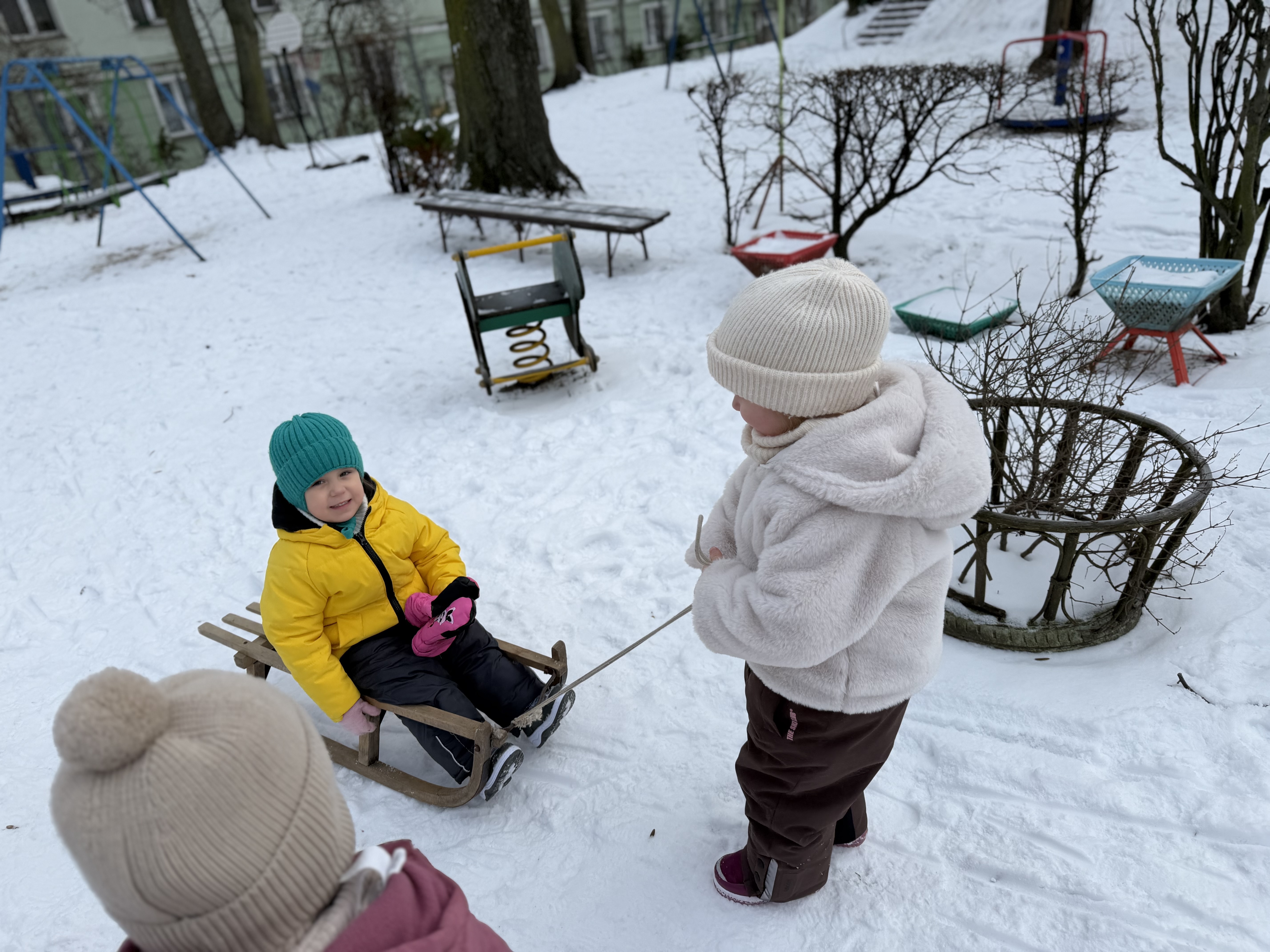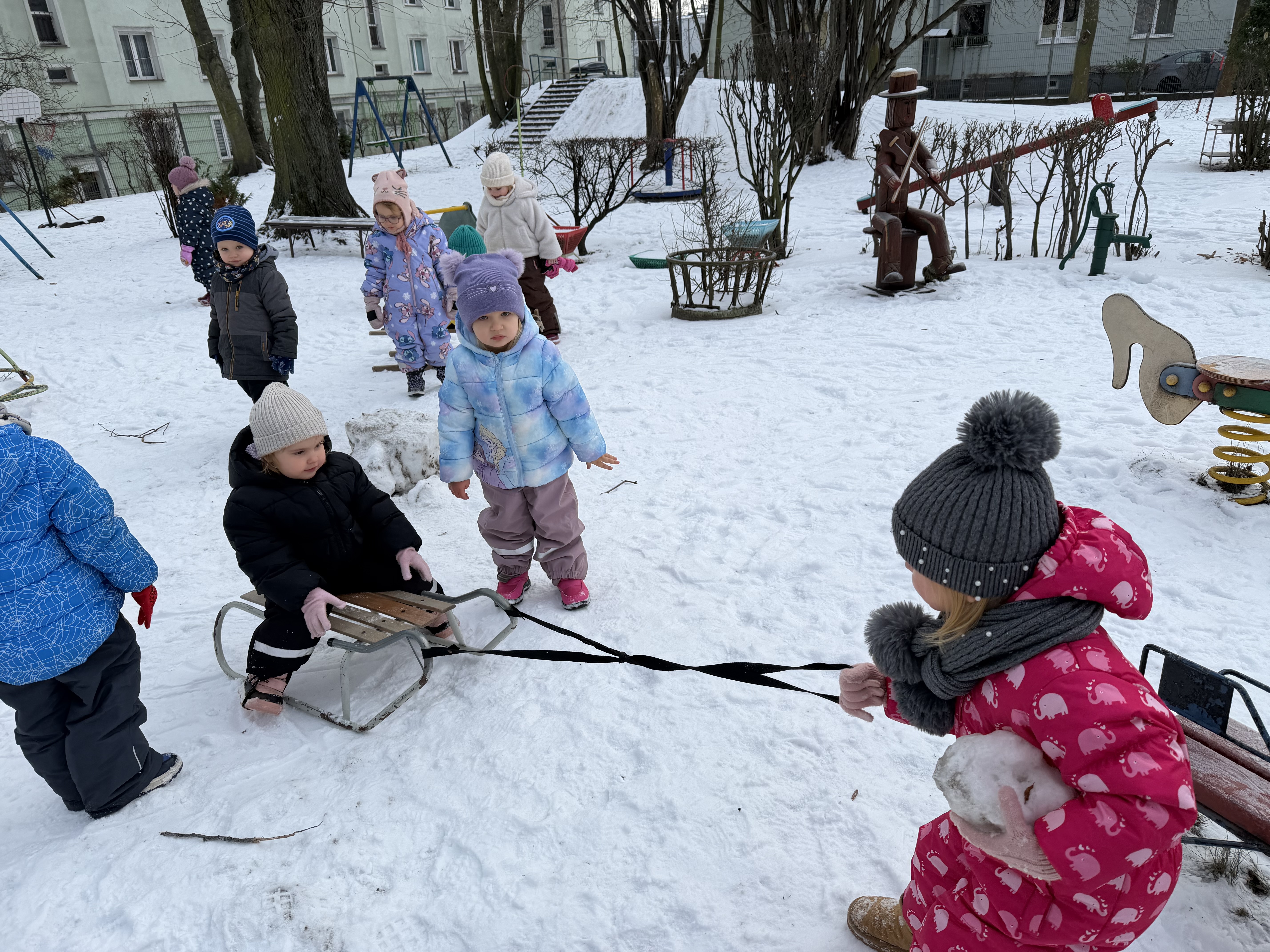 Nasz przedszkolny ogród jest piękny o każdej porze roku, a zima nadaje mu wyjątkowego uroku. Spędzanie czasu na dworze zimą ma wiele zalet – wzmacnia odporność, hartuje organizm, wspiera rozwój motoryki dużej oraz zachęca do aktywności fizycznej. Kontakt z naturą i świeżym powietrzem wpływa również bardzo pozytywnie na samopoczucie dzieci, ich koncentrację i ogólny rozwój.